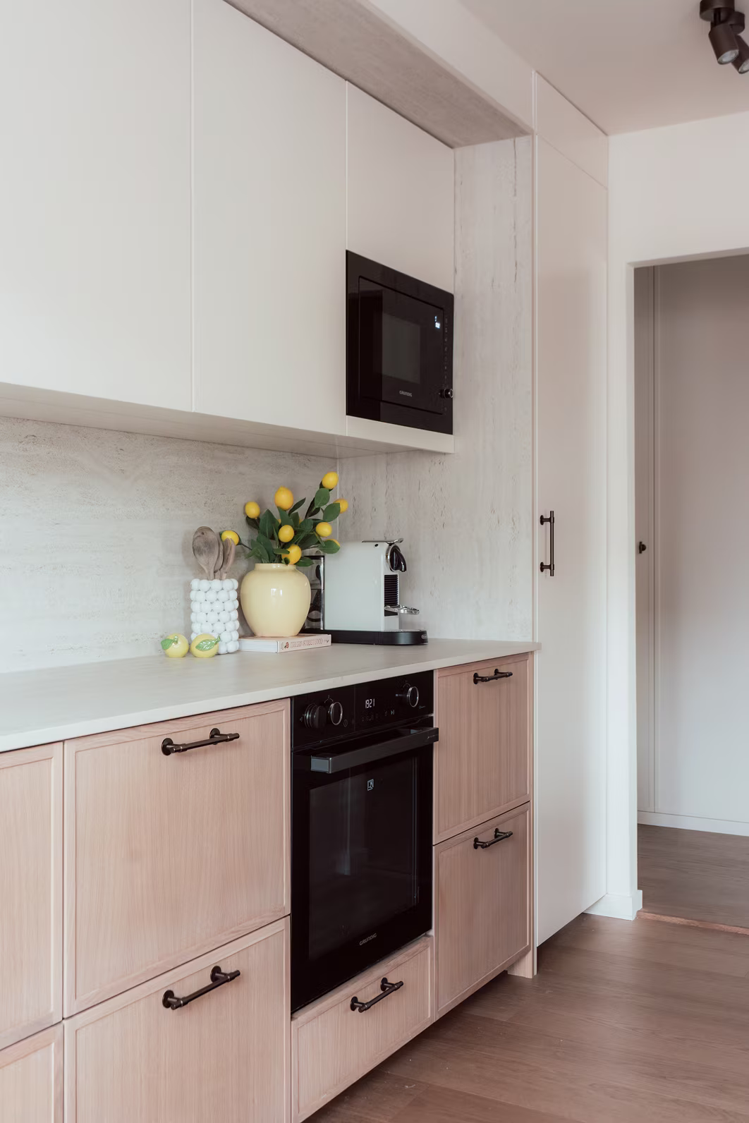 Den här lägenheten har vi förvandlat till ett harmoniskt och sammanhållet hem där mjuka valv, skräddarsydd förvaring och en varm färgpalett binder samman rummen. Vi har optimerat planlösningen och skapat en miljö som känns både lugn och funktionell. Genom genomtänkta materialval och skräddarsydda detaljer har hemmet fått en tidlös karaktär med personlig prägel.